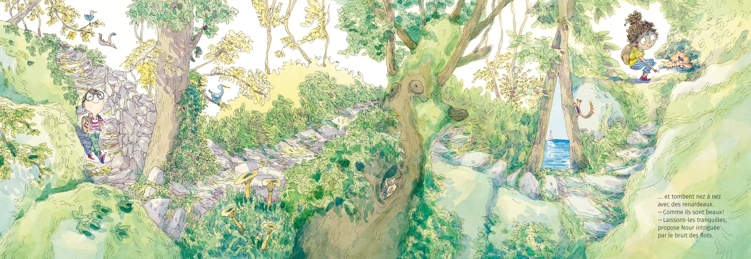 Juliette Lagrange / Née à Lyon, c’est pourtant dans le Sud, et au soleil, que Juliette Lagrange trouve son inspiration. Elle aime les petites bêtes, les plantes rigolotes, les gens vieux, et les objets qui ne sont pas droits. Diplômée de l’Ecole Emile Cohl en édition, en juin 2016, elle se passionne pour les techniques papiers. Elle aime l’aquarelle avec beaucoup d’eau, et les traits à l’encre fins et un peu tordus. Elle a publié plusieurs albums chez différents éditeurs (Kaléidoscope, Little Urban, Sarbacane, etc.) et travaille aussi pour la presse. À la Joie de lire, elle a aussi illustré Gabriel de Maylis Daufresne.